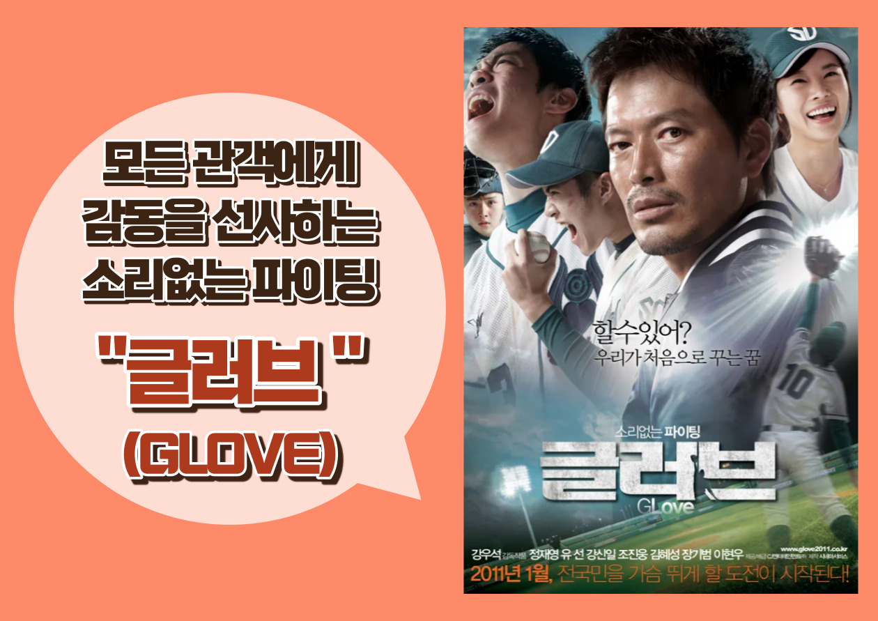 영화 "글러브 (Glove)"는 청각장애를 가진 학생들이 모여 있는 충주성심학교 야구부의 이야기를 바탕으로 만들어진 야구 영화이다. 강우석 감독이 만들어 2011년 1월 20일 개봉한 이 영화는 비록 총 관객수 1,887,773명이라는 저조한 기록을 세웠지만 청각장애를 가진 학생들의 투혼과 열정을 담은 감동 깊은 스포츠 영화로서는 호평을 받은 영화이다. 현재 OTT 플랫폼 넷플릭스에서 볼 수 있으며, 넷플릭스에서 시청할 수 있는 날이 다음 달 25이라고 하니 아직 이 영화를 관람하지 않은 사람이 있다면 꼭 한 번 보길 추천한다. 문제 투성이 코치와 말은 못 하지만 야구에 대한 열정만은 그 누구 못지않은 9명의 충주성심학교 야구부원들이 함께 써 내려가는 감동은 최고의 추억을 선사해 줄 것이다.